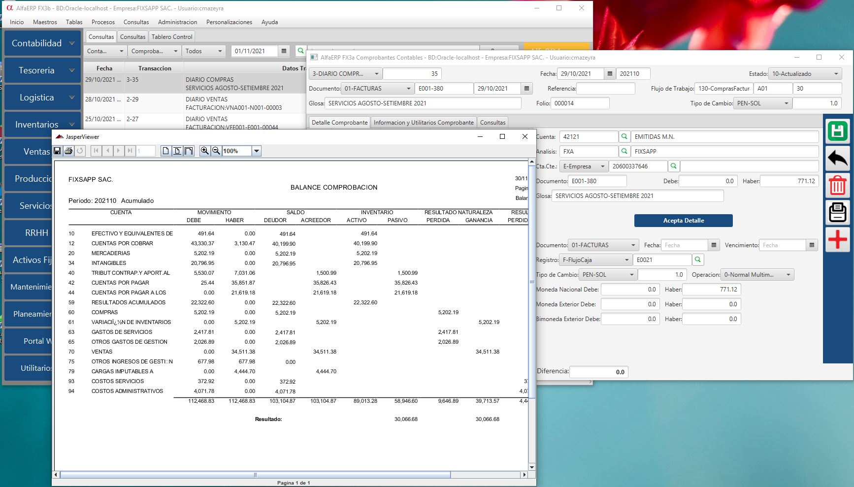 - La integración con los procesos de negocio de Tesorería, Logística, Inventarios, Ventas, Producción, Servicios y RRHH, identificando y visualizando en detalle y en tiempo real el proceso administrativo origen del comprobante contable.