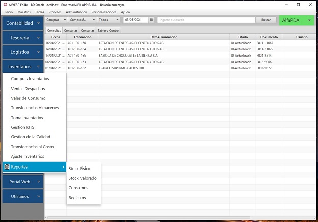 AlfaERP utiliza intensivamente productos y servicios Oracle, lider mundial ofreciendo una plataforma integral en la nube (Oracle Database es un servicio) con acceso seguro a la información en cualquier lugar y hora; local (Oracle Database) con acceso rapido, especialmente en Ventas y atención al Cliente, y en servicios hosting (MySQL) para aplicaciones WEB.