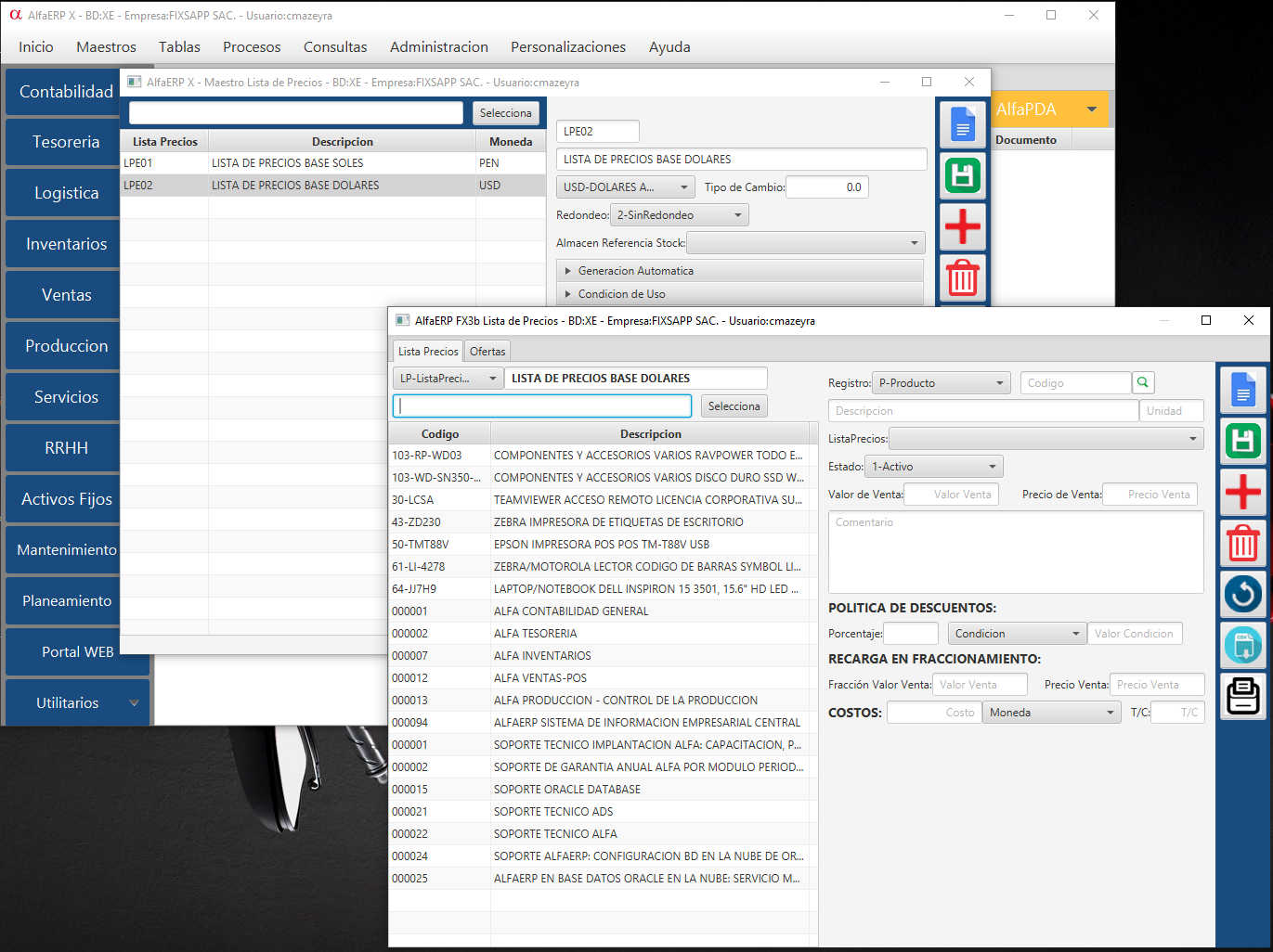 El objetivo principal de este proceso, es implementar la Politica de Precios que Cliente de AlfaERP requiera, para ello AlfaERP-Ventas a definido un conjunto de herramientas flexibles y sencillas que permitan principalmente:
