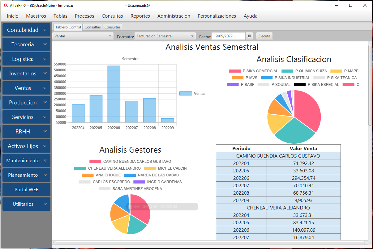 - Control en la gestión de desempeño comercial. Ratios PK (Precio Kilogramo), VN (Repetición de Ventas por Cliente – Satisfacción Cliente), y otros implementados por Producto, Unidad de Negocios, Zonas, Clientes, Lista de Precios, Vendedores, etc.